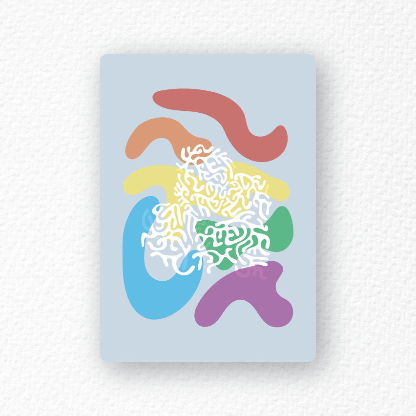 Cette série de grands formats est née d’une nécessité : celle de canaliser mes pensées, toujours en ébullition. Mon cerveau est une galerie souterraine aux mille couloirs, où je me perds sans fin, passant d’une idée à l’autre sans jamais retrouver la sortie. Ma psy parle de pensées en arborescence, mais l’image est trop jolie, trop ordonnée pour le chaos labyrinthique qui s’agite dans ma tête. C’est de l’expression les méandres de l’esprit que ce langage graphique tire son nom.